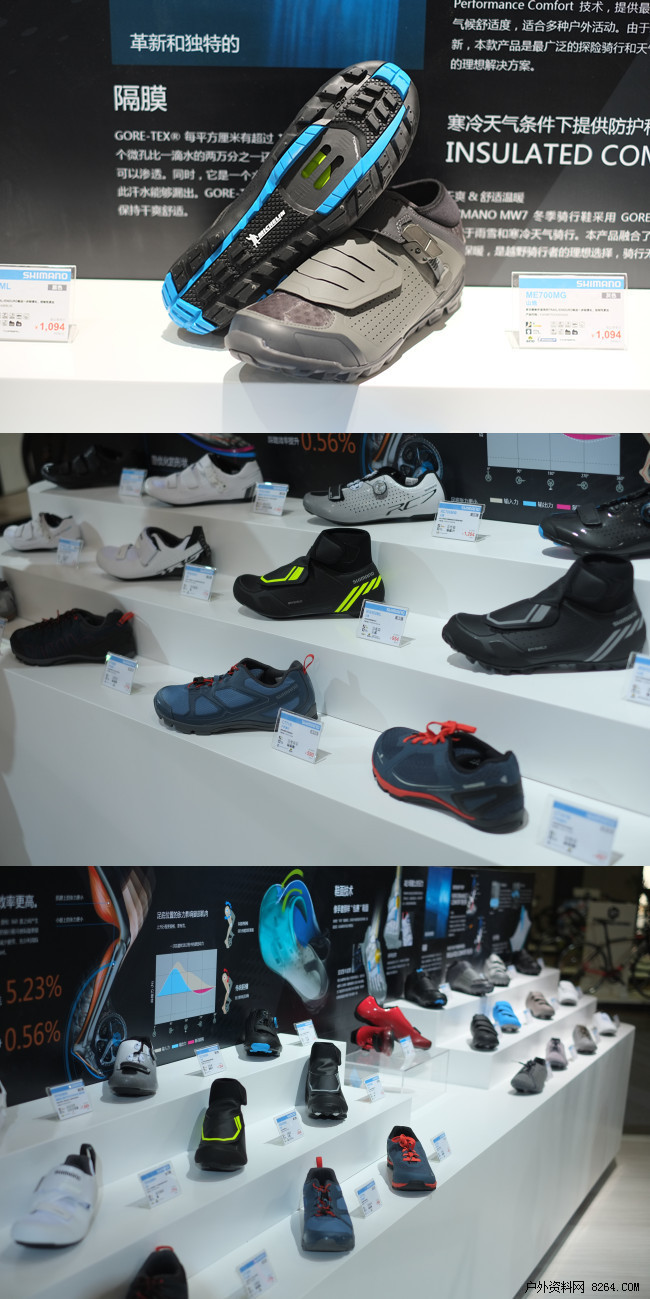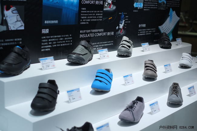 知名自行车配件厂商SHIMANO也参加了本次亚展,这几年SHIMANO一直在开发多功能的骑行鞋,专为山地骑行与户外徒步相结合。而今年他们将这一概念进一步加强,推出了适用于各个领域的多功能骑行鞋。