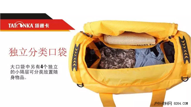 TATONKA(塔通卡)旅行驮包(65升),可提可背式旅行背包,全面优化的流行经典:配有可折叠式肩带和手提把,无论背或提都十分便捷;背包颜色简单清新,搭配防水布料的设计,时尚精致。