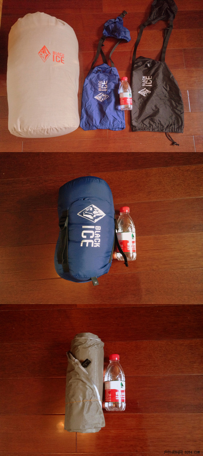 黑冰G400 睡袋,还有一个黑冰B700睡袋,两者打包以后体积相差不是特别悬殊,黑冰B700和肥西1曾经一起被我装入24升的包里面。