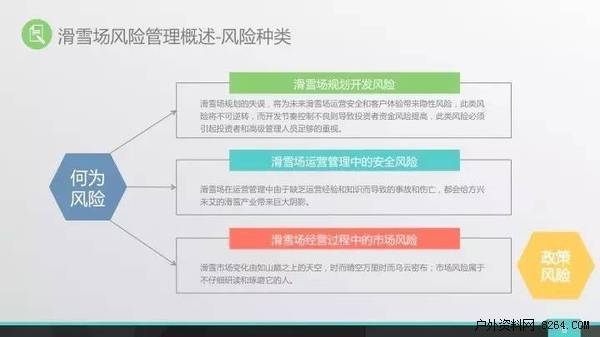 滑雪场的风险管理分为三块:规划开发期的风险、滑雪场运营中的管理风险、滑雪场经营活动中的市场风险。