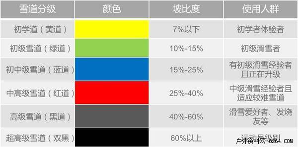 在全球范围内,雪道难度的分级也不尽相同,对于当前国情及大部分滑雪者的滑雪水平,建议政府部门对滑雪道进行分为六级,并在雪道上设置明显标识,让滑雪者能清楚认识雪场、选择适合自己的雪场,以避免因错上雪道造成不必要的事故。