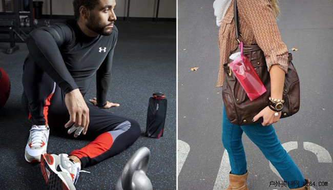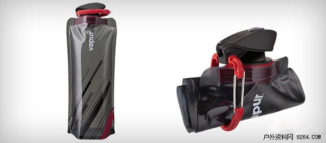 这个瓶子是可以放在你的冰箱里,坚固的三层材料使瓶被折叠无任何损伤。它还附带一个塑料扣,你可以很容易地将它挂到你的背包上。水元素折叠瓶0.7 L型零售11.99美元;一升的折叠瓶在13.99美元。
