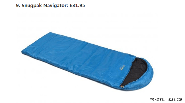 Snugpak的睡袋是由手感柔和的合成纤维制成,能使用很长一段时间,针对每种露营情况都有专门设计的睡袋。挑这款睡袋是因为它的价位相对合理,而且足够温暖舒适,不会感到太重或不透气。因为这款睡袋是矩形的,带有双向拉链,所以能被用来当作被子使用。不过它也不是那种超轻型睡袋,所以还是更适合有开车的露营之旅,如果你需要带很多其他东西走上数英里的话还是不建议用这款睡袋。