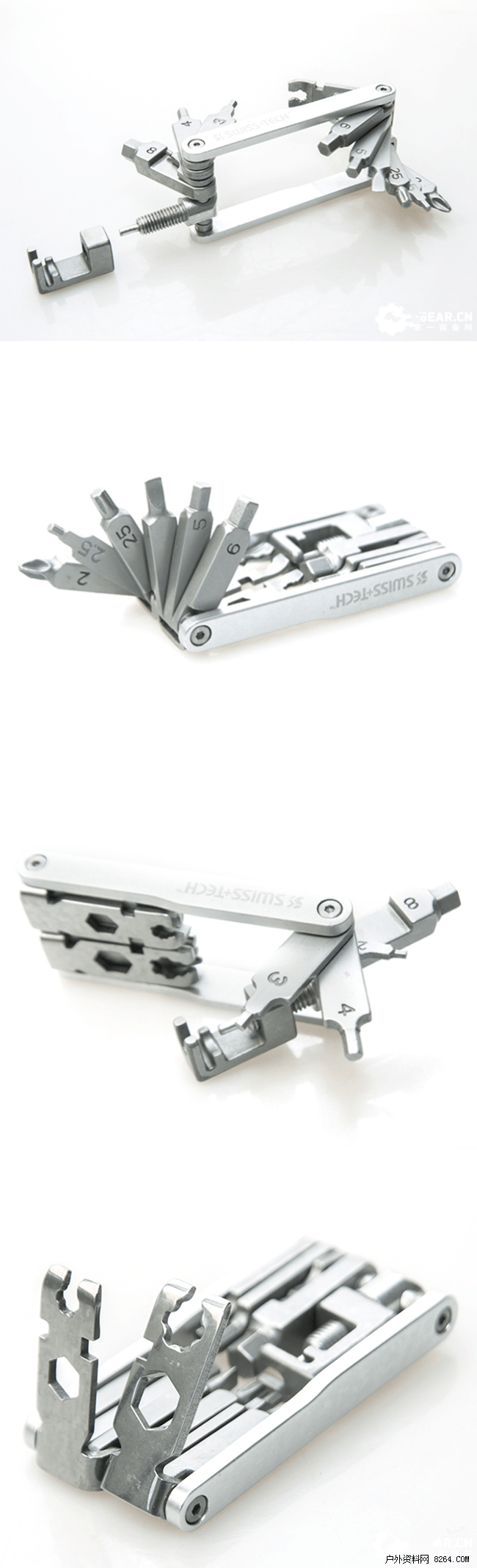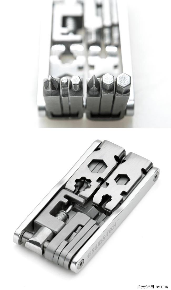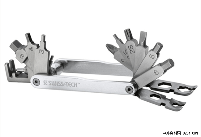 20种高质量的工具由不锈钢和铝制的混合材质打造,集合了十字和 一字、多种六角扳手、内角扳手、撬胎和幅条工具。此外工具采用不锈钢混合材料制造,坚固而且耐生锈,尤其适用于户外骑行。
