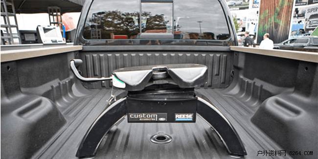 5th wheel 字面上翻译为“第五个轮子”,一开始我搞不懂第五个轮子在哪里,经过解说,才知道是指利用卡车后方的连结盘(像货柜车后方的U形大磁铁盘)拖曳后方的露营拖车。连结盘像这样: