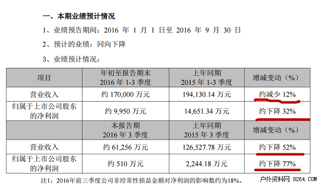 公告显示,对业绩有影响的是户外用品板块和旅行服务板块。其中户外用品板块1-9月营收同比下降约5%,原因在于公司加大对过季库存的清理力度,使公司销售毛利率同比有所下降,此外加盟商的并表带来零售终端费用大幅上升,从而导致户外板块净利润同比下降。旅行服务板块,1-9月营收同比下降约20%,主要由于易游天下继续推进业务转型,增强体验式旅行产品的研发力度,大幅缩减了盈利水平较低的普通旅行产品业务规模,这也使得其营业收入规模同比下降。同时,由于易游天下的业务转型、绿野中国计划等仍处于实施推进的前期阶段,对公司净利润的贡献仍呈现为计划内的亏损。
