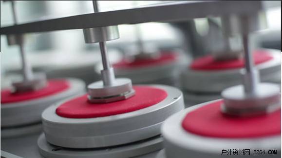 ● 行走模拟器一个特殊的行走模拟器——折弯机将用于测试GORE-TEX(R)鞋品的防水性能。测试鞋被穿在柔韧并装有湿度传感器的人造足上面,并在布满水的水槽上行走20万步,以模拟一个远足者穿越湿地或小溪时的环境。在测试中,水汽一旦进入鞋子,人造足就会停止行走,传感器也将显示漏水处的位置,这双鞋的设计将会被改进并再次进行测试以确保达到GORE-TEX(R)鞋品严格的质量标准。