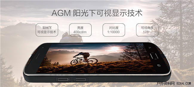 AGM X1户外手机黑科技之阳光下可视显示技术,弱光下看起来更通透,阳光下看得更清晰,让户外爱好者彻底摆脱阳光下无法使用手机的痛点,这才是智能旗舰手机应有的亮度!