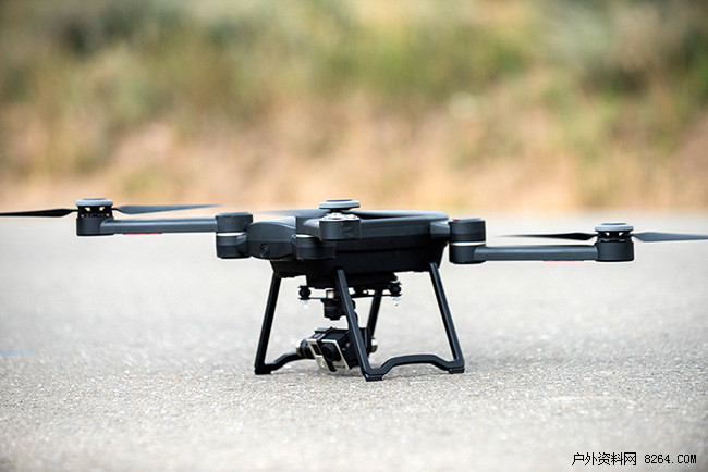 在机翼的下面都带有指示灯,用于飞机飞行前较磁以及显示飞机的飞行状态,不得不说指示灯也是超级炫的。其实从下图也可以看出来无人机超大的负载能力,机翼可以看清楚,而下面的草丛已经晃动的完全模糊了。