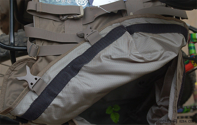 在驮包两侧的最外层,还有一个网格侧袋,可以临时放置拿下来的防雨罩,魔术头巾,太阳帽等等,非常方便。免去了打开驮包的麻烦。