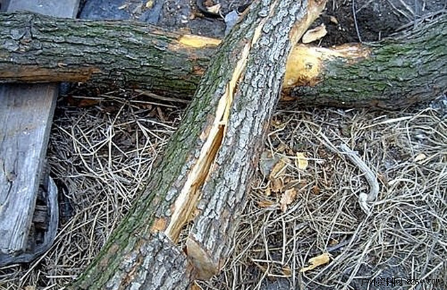 敲一敲之后,你会发现树枝开始有裂痕了!而且裂的大约就是一半的厚度,此时再接再厉,将其敲开。