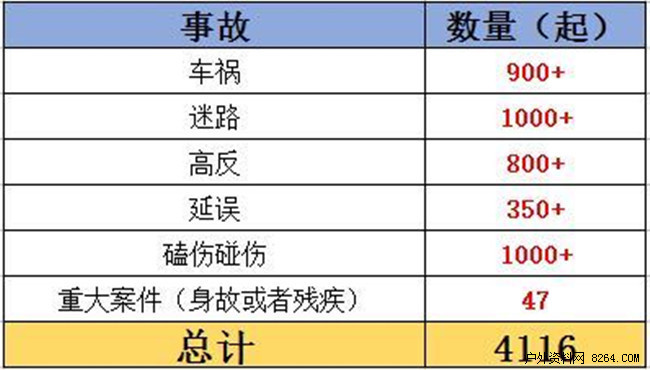 10月份中国户外意外事故总4116多起(本数据由慧择网统计)其中具体事故数量见下表: