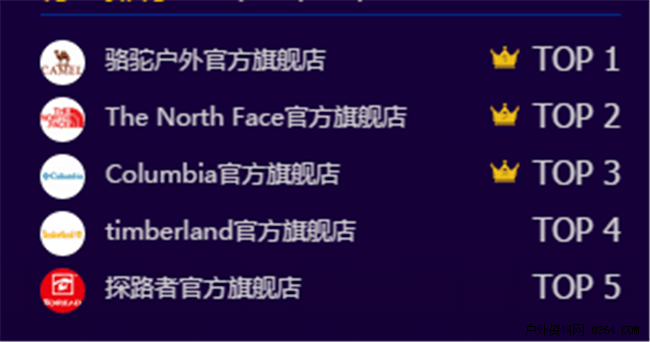 截止11日9点户外品牌旗舰店销量排行榜: