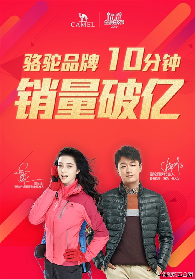 截至11日0点43分,骆驼品牌销售突破2亿