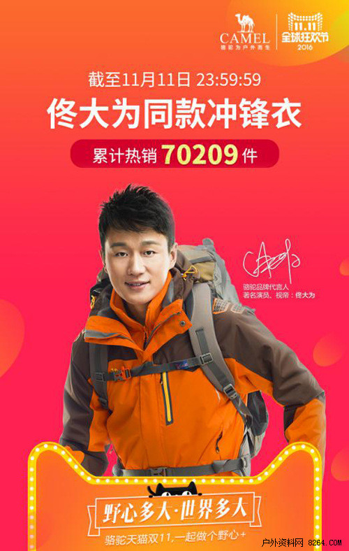 现在,就让小编帮大家盘点骆驼冲锋衣中,那些占据全网绝对优势的“镇店之宝”! (数据截至2016年11月11日24:00)