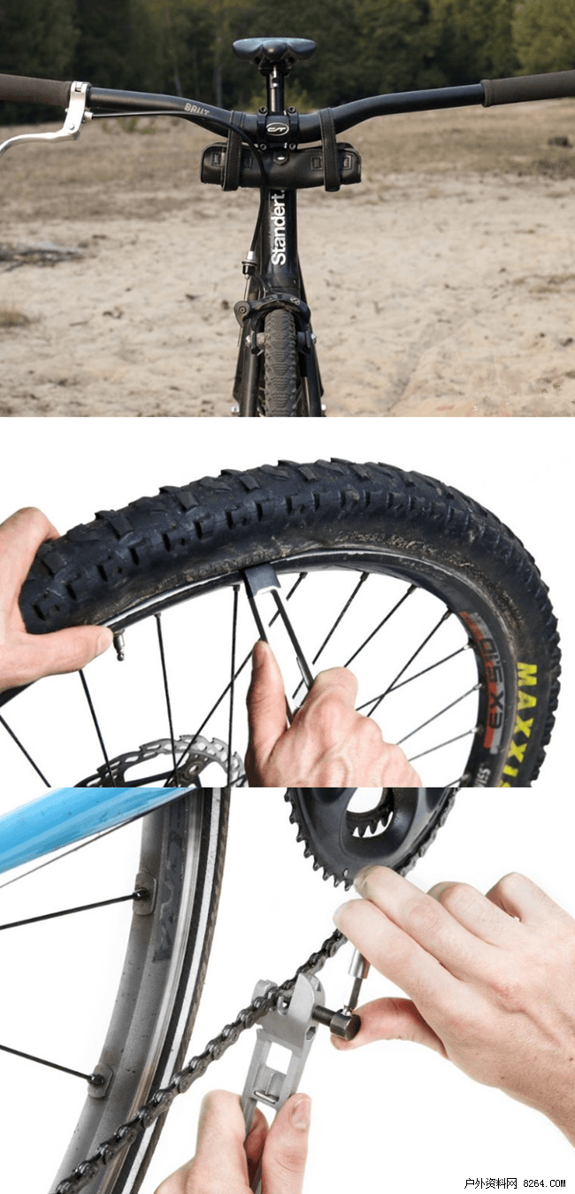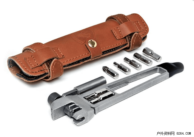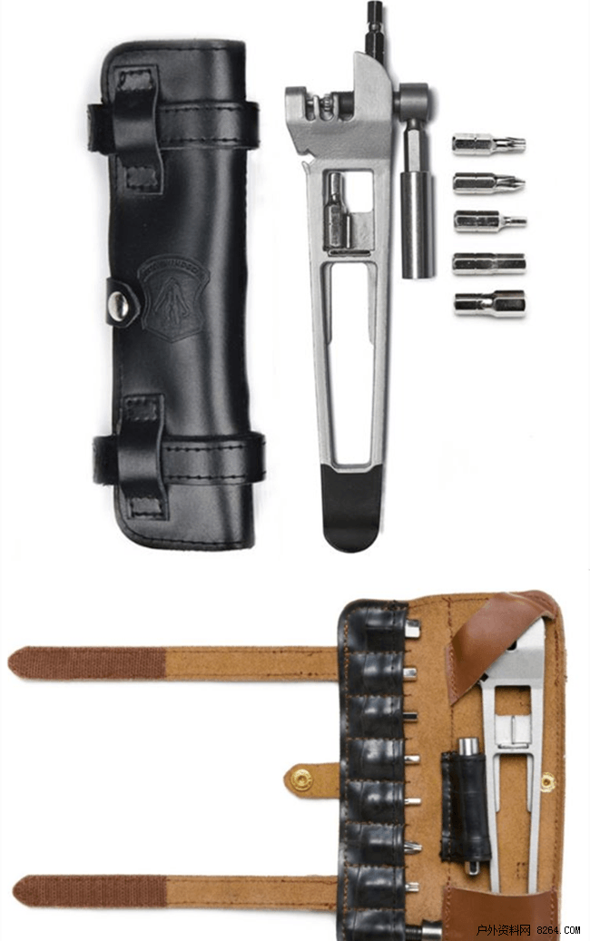 握手为不锈钢板材质,尺寸在15.5cm x 宽3.5cm x 厚1.15cm,此外,工具组仅重:100g?、皮革包仅重185g,可横挂于单车后边身或椅垫上。