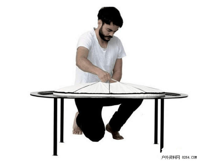 打开后外围是一圈圈的黑色金属框架,采用碳纤维制成,搭配白色布质地(采用三层结构合成高性能材料,完全可机洗)的“缸”体,还有浴缸的腿儿以及水龙头。只要有热水,就能享受和普通浴缸一样的舒适沐浴了……