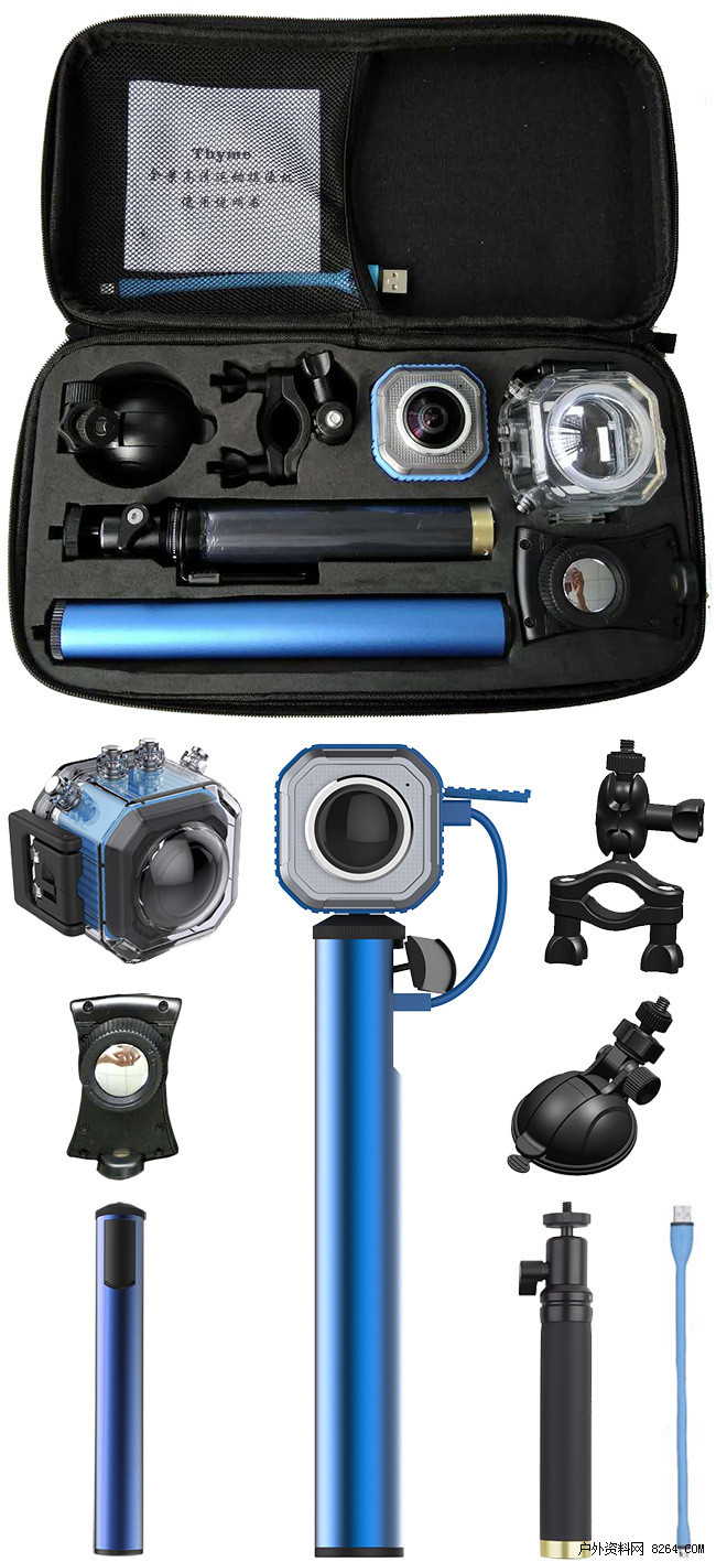 THYME推出多功能的套装旅行盒,包括全景运动摄像机,手持自拍充电宝,自拍杆,防水壳,智能手机夹,硅胶一体线,单车支架,汽车支架的八件套,旅行和户外运动当中,一次解决所有你对影像的需求,包括自拍,骑行,汽车越野,潜水,冲浪,和手机充电。