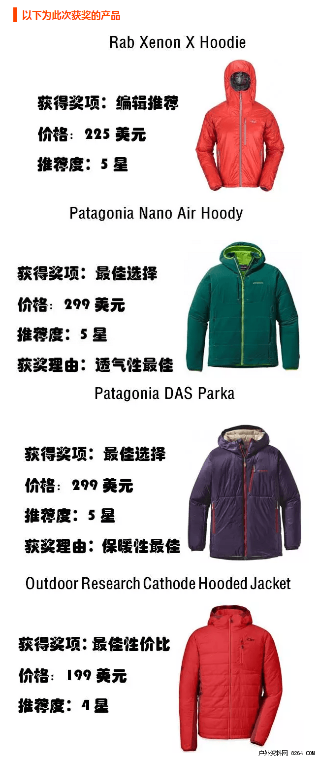 最后,那些以透气性见长的轻量棉服自然是表现最差的产品,因此Patagonia Nano Air Hoody和Outdoor Research Uberlayer Hooded Jacket的得分自然也是毫无悬念的排在了末尾。