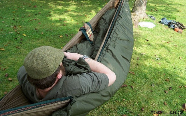 SNUGPAK 睡袋在户外界的名气不大,比较小众,但是产品质量和设计都相当不错。这款产品采用了吊床的结构,当你躺进去的时候,睡袋会紧紧包裹你,像是茧一样,提供最大程度的保暖。吊床不接触地面,睡起来舒服,还能有效避免蚊虫叮咬,怕虫子的小伙伴有福了。