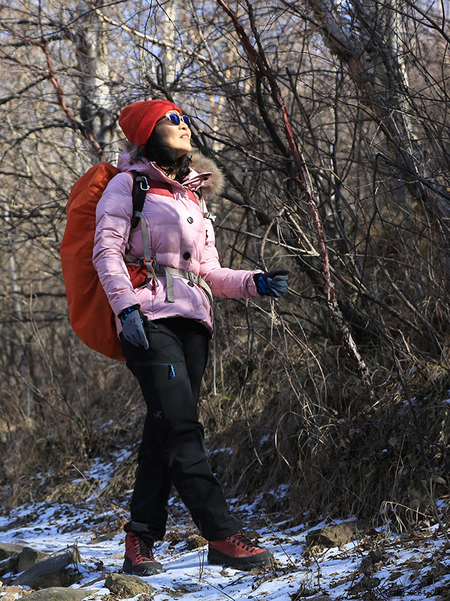 我们今天轻装穿越这条路线,刚开始穿越时,因为是一路爬升,为防止身体出汗,在不断爬升过程中,我把羽绒服脱下来装在背包中,只穿了压缩衣和软壳衣。到达大冰瀑之后,我们一行停下来,欣赏美丽的冰瀑,开始进行拍摄。因为零下2度的气温还是很寒冷的,停下来期间,我脱下软壳衣,穿上这件诺诗兰罗瑞尔羽绒服,在拍照的一个多小时过程中,这件轻暖羽绒服给了我最舒适自如的温暖呵护。