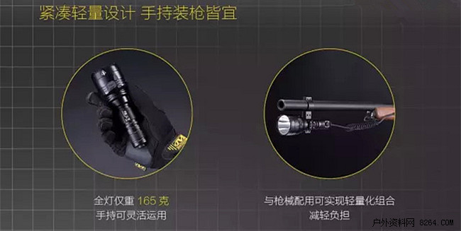 当然,装枪也是可以的。轻量设计,25.4mm一英寸的标准筒身,让它能与许多装枪配件配用,包括枪夹、战术尾线、多色滤镜等等,各种方便各种高大上有木有!有条件接触打猎的宝宝们不容错过!