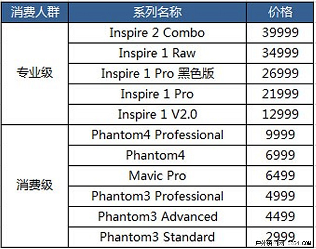 对于无人机行业而言,众所周知,制造商只分2种,大疆和其它厂商,无论从从市场份额还是技术层面看,大疆都彻底垄断了这一市场。在专业级无人机领域,不论是好莱坞还是国内电影电视媒体,唯一使用的便携式航拍机型,就是“悟”Inspire。而在消费级无人机领域,其它无人机厂商通过与大疆的价格差异化竞争,将主力机型集中在4000元以下机型,占有一定份额。