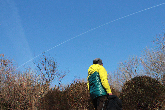 北方寒冷的天气已经让树木变成了"光杆司令",而这款羽绒服的出现为这个季节增加了几分生机盎然。此时室外的温度在0度,无风。小编内穿保暖功能内衣外加这款羽绒服完全可以应对这个的天气。整个穿越过程中,随着运动强度的增加,会有多余热量的产生,而这款羽绒服的透气性能表现的也相当不错。因为当时无风,天气晴朗,所以也可以拉开拉链作为热量的排放方式。