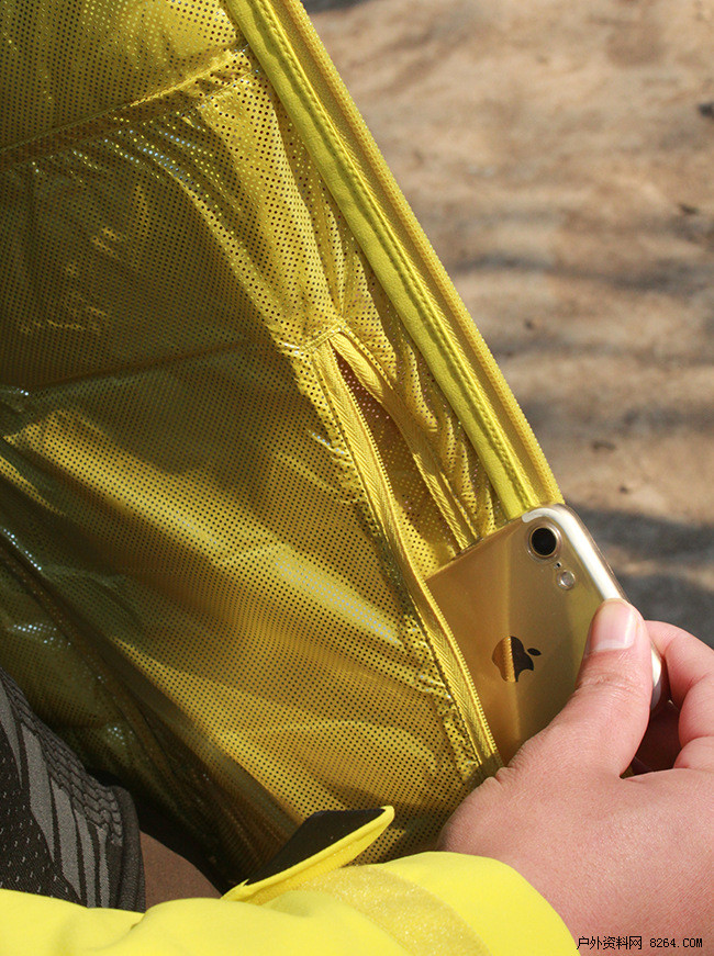 这件夹克的内侧口袋设计到了插手口袋的位置,开头方向和门襟主拉链平行,口袋基本是方形,可以放下手机等物品。下图可以看到内侧口袋的位置,Columbia Omni-Heat奥米•热能反射技术材料闪闪发光。