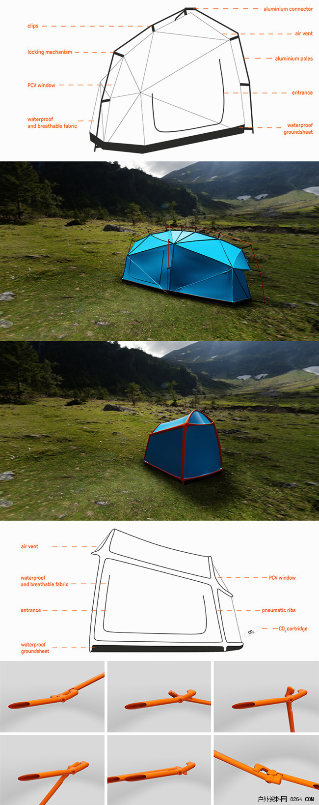 “bolt-half”, “bolt-one”,“bolt-air”三款帐篷超级轻质,而且易于安装,是短途旅行和远足旅行的理想之选。“bolt-one”是三款帐篷中最大的一款,最适用于远足旅行。“bolt-half”比较轻质,但是性价比却比较高;载重量达1.2kg,相当于一个人外出一夜的物品;尺寸大小也比较合适,便于在目的地快速安装,“bolt-air”是三款中最轻的,正如所料,也是最小的。就像“bolt-half”一样,“bolt-air”也适用于单人短途旅行。