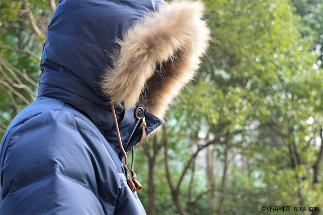 3、兜帽的可拆卸貉子毛领对面部的保护十分出色。