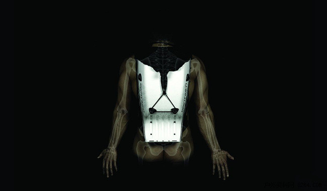 为了让背部承受最低力度重击并将重击能量从背部中央转移而做的特殊设计。将重击力道从重击点尽可能地分散在大片区块,背包的硬壳形成一个吸震区,让来自身体的撞击有缓重的距离。