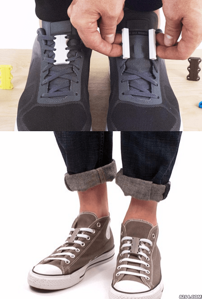 Zubits磁性便携鞋带扣用法极简单,只需把最顶叁排的鞋带拔出来穿过Zubits,再把多出来的鞋带部分剪掉;而每组Zubits由两片扣子组成,两片之间用磁力很强的磁铁连接,很难直接拉开,以保证日常穿着时不会松开,需要分开时,要将两片进行错位用力即可。