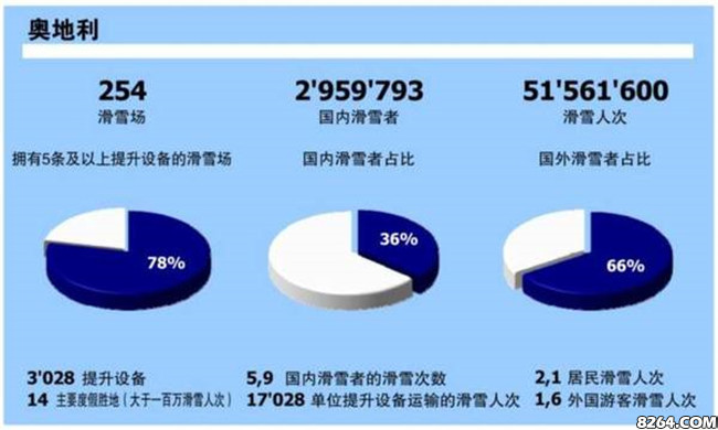 奥地利拥有浓郁的滑雪文化,是世界上唯一有学校安排学生定期滑雪的国家。度假村各具特色,高山滑雪的商业模式也很特别,奥地利拥有最大规模的酒店住宿,大多数酒店都是家庭自营,市场营销方式相对保守,但也有一批忠实客户,是国内、德国及荷兰滑雪者的住宿基地,根据2014-2015雪季的部分数据,住宿率占比分别为12%、48%和12%。事实上,奥地利是滑雪者流动较大的输入国,大部分滑雪人员来自国外,其中一个传统的客户群来自英国的旅行社。
