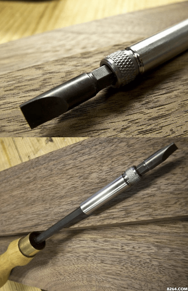 高品质的金属起子头是采用标准的规格,No.1共附上十字型金属起子头四种与一字起子头两种。也因为採用标准规格,一般市售的螺丝起子头皆可顺利安装。