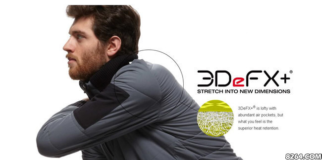 3DeFX+全新面以高质量的纤维和纺织技术构建,使用绝缘材料和四种不同的螺旋状纤维结合。有这无比强悍的拉伸性,在运动中让用户真正的体验无拘无束,在锁住热量的同时兼具良好透气。