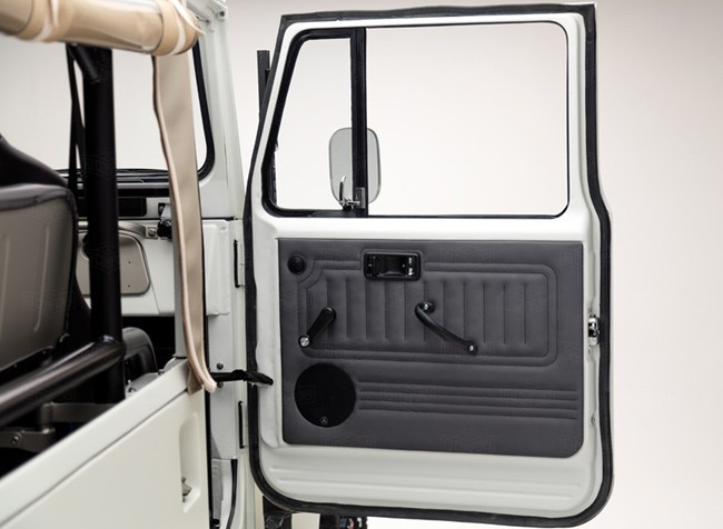 迈阿密的FJ公司在改装的时候保持了原车型的经典外观,包括标志性的前大灯和挡板,还恢复了车辆的长轴距。外观上最大的突破在于它集经典复古与时尚前卫于一身,强调车身线条的统一,使整车体现出十足的现代时尚感,FJ的前脸设计极具复古感,整个车身外观都是无光泽的白色油漆,与哑光银色的标识和丰田OEM轮子的金属灰色进行搭配。硬顶现在被替换为帆布软顶。其余升级包括了转向辅助,前盘式制动器以及Haltech电喷技术。保险杠和绞盘也自然是不可缺少的。除此之外,定制改装的防滚架也给了驾驶员更多的信心,可以尽情撒欢。