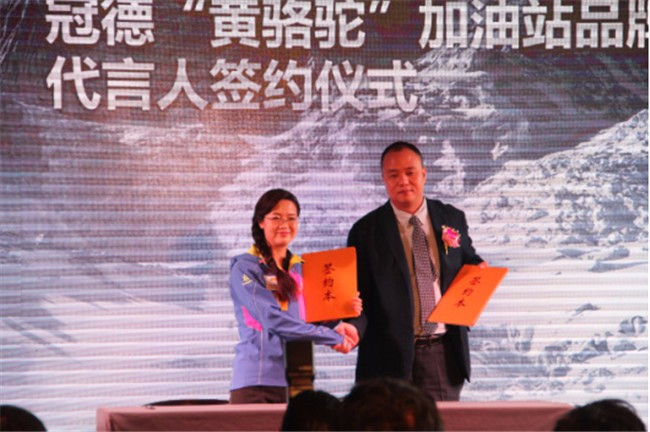在现场全体嘉宾的见证下,罗静与冠德石油领导共同进行了冠德“黄骆驼”加油站品牌代言人的签约仪式,并且为罗静攀登第11座8000米雪山举行了壮行仪式,冠德集团领导与现场嘉宾一起为罗静的下一次攀登助力。