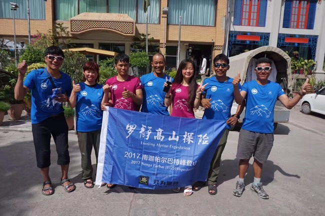 “2017攀登南迦帕尔巴特&布洛阿特# 昨天到达伊斯兰堡,入住以往同样的酒店,前台和桌子上的旗子让我一下感觉很亲切………陆续见到老朋友也是很开心。日本渡边姑娘(春季去的干城章嘉,未登顶。两次同登安娜,遗憾都未登顶,只认定跟我们走的姑娘),土耳其老哥(春季登顶道拉吉里,14年同登K2,当时骑车到了冰川下也是很有意思的人,右手四个手指被截肢),还有人陆续到来。预计13号离开。。。”——6月11日罗静在朋友圈中写道。”