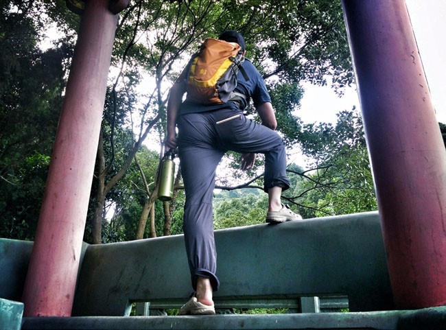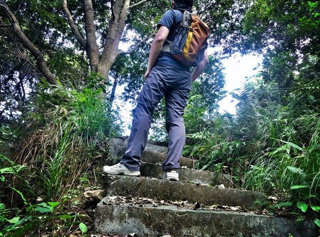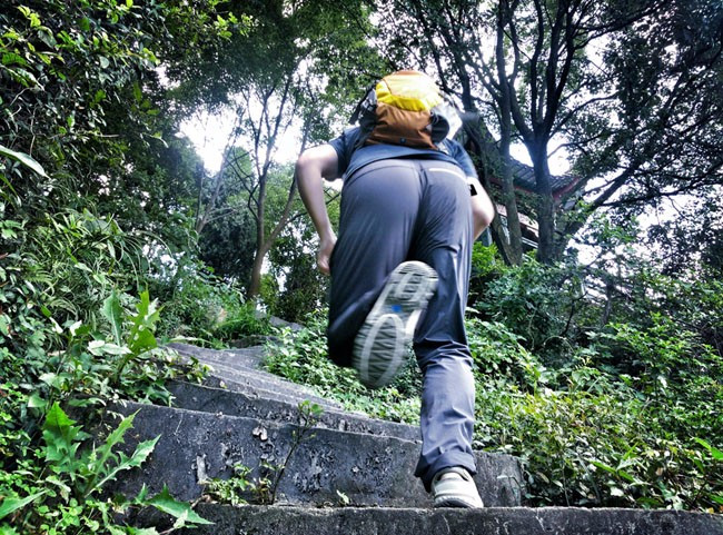 所以在这种潮湿环境中,且布满苔藓的台阶上也能稳定上下。因为稳定所以显得轻松。这也是其大底的性能体现。