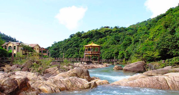 南昆山的石河是一奇观,河道的石头都是从山上被水流冲下来的,河水清澈见底,河底的卵石和河边的怪石相映成趣。溯溪而上,水急处,颇有点袖珍版“三峡”的气势;而水缓处,小水潭适合泡泡脚。而从川水龙(山溪名)开始,沿着溪边寻水而上,一个接着一个的小瀑布便生动活泼起来,著名的川龙瀑布更是从山中间凌空而出,跌宕跳跃后泻入清潭。