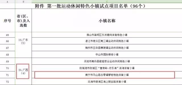 这次国家体育总局公布的第一批运动休闲特色小镇试点项目名单,除了马山县古零镇攀岩特色体育小镇,河池市南丹县歌娅思谷运动休闲特色小镇、防城港市防城区“皇帝岭-欢乐海”滨海体育小镇、北海市银海区海上新丝路体育小镇也一并入选。