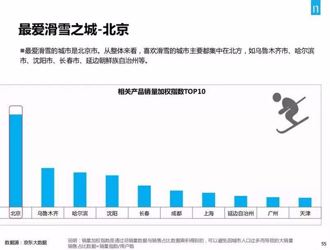 地域差异营造的生活场景是推动体育消费的场景之一。比如最爱棋牌麻将的城市是成都、最爱冲浪潜水的是大连、最爱瑜伽的城市是上海,户外鞋服在西藏地区比重最大,这些数据对体育运动用品如何通过不同地域特征,有针对性地进行场景化营销给了重要依据和启示。