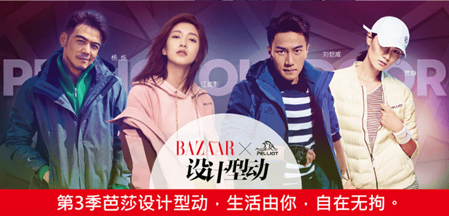 为了让更多消费者了解伯希和城市探索系列,也为了为品牌注入更多的时尚与活力,2017年9月份,伯希和携手顶级时尚媒体时尚芭莎联合杨烁、江疏影、刘恺威、贾静、王培沂强强打造了伯希和VS《时尚芭莎》公益设计型动,这是行业户外品牌首次与时尚传媒和明星联合营销,此次活动让伯希和的时尚设计理念得到了很好的诠释的同时也获得了消费者的良好反馈。