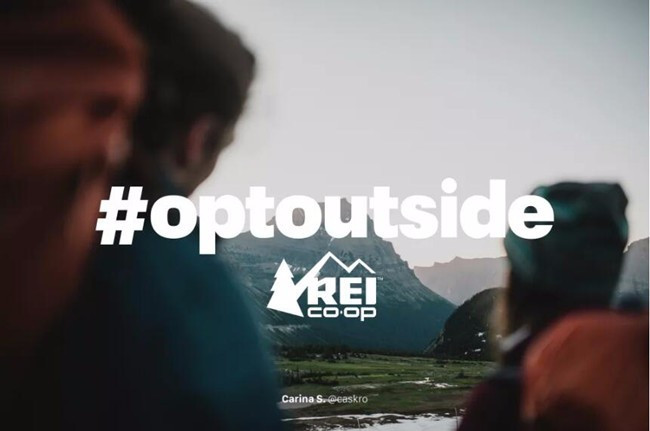 REI连续第三年发起他们的 #OptOutside 活动,黑五当天,其全美的151家店铺全部闭店,2万余名员工带薪放假,号召员工及消费者们一起去户外过一个更绿色的“星期五”,不排队,不购物,与家人朋友一起真正的感恩下大自然的馈赠。