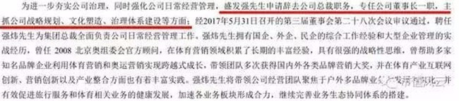 从履历来看,强先生曾任职奥美体育营销总监、乐视体育首席营销官,在体育营销领域有长期的丰富经验。