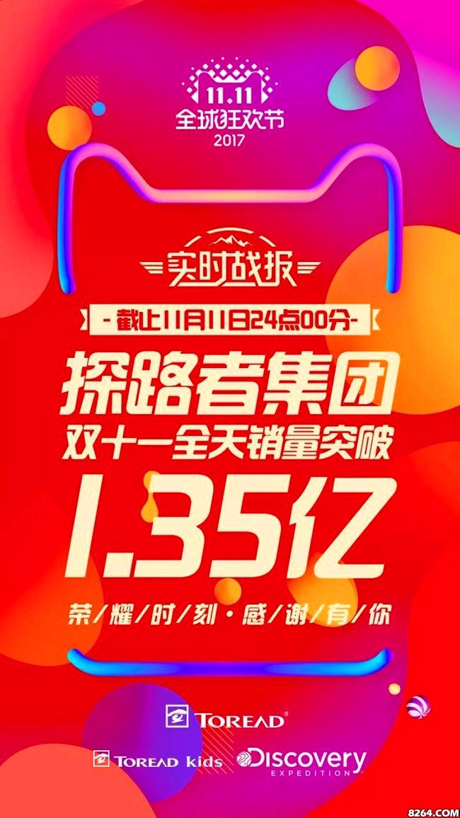 2017年探路者品牌、Discovery Expedition及探路者童装品牌实现1.35亿的销售额。这是探路者集团参加双十一以来首次破亿,探路者也再次入选国家级电商示范企业,线上渠道销售持续走高,对于专注于线上线下联合营销的探路者而言,这无非是今年难得的喜报。