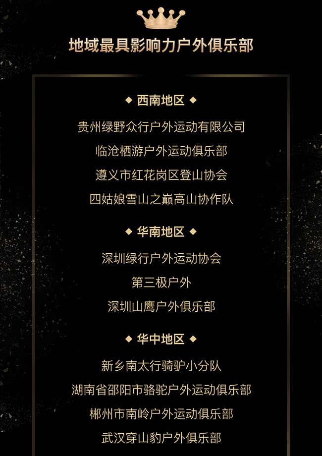 地域奖——年度最具影响力户外俱乐部