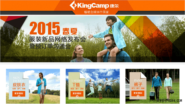 自驾露营装备知名品牌KingCamp,由徐国庆创立于2002年,目前已畅销全球38个国家,经销商遍布全球各地区。为更好满足多区域经销商的订货需求,KingCamp于2014年10月10日,创新性召开2015春夏服装新品网络发布会,这一天,KingCamp精心搭建的官网发布平台面向其全体经销商开放,并接受新品预定。