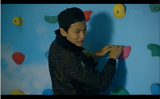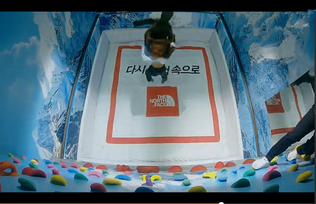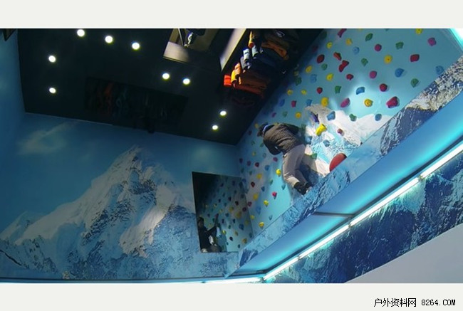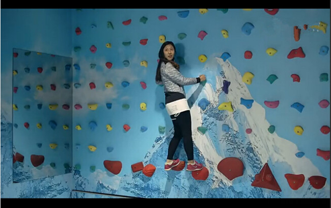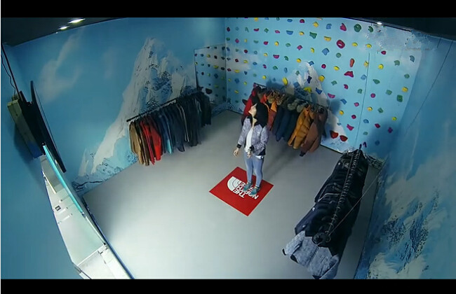 3.地板开始自动后撤,展示衣物上升,不知所措的顾客可以站立的区域越来越小,只能爬上攀岩墙!